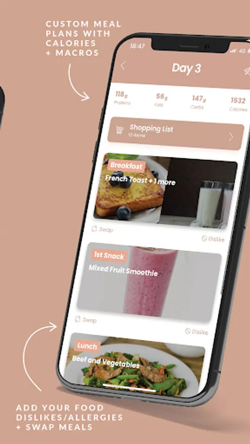 Plus 3-6 meals per day, swap any meals you dislike, add food dislikes/ allergies, receive 7 different days of food in your meal plan, plus calories and macros. Use our food diary to enter any of your own meals. Thousands of recipes updated regularly. Building habits and a healthy lifestyle is about more than your training program, get access to our educational content where we explain topics such as refeed days, training intensity, training to failure, warm up sets, and more. Find mindset content designed by our TWS psychologist Jess Allen, with worksheets and tasks designed to help you focus on what's important. Also included: