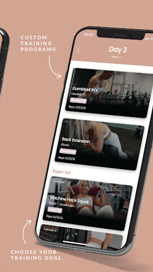 Access simple, effective, and evidence based training programs designed to help you build lean muscle and shape, get stronger, and healthier. Each program is designed specifically for you and your goals, training level, and days of the week by world class personal trainer Sophie Allen. All programs are updated every 4 weeks based on you and your progress. Choose from 5 training goals: