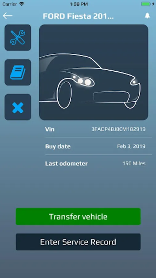 vehicle setup, service provider selection, service maintenance, service record validation, vehicle history, reminders for service, predictive maintenance, cost containment, service discounts, vendor reviews, vehicle transferability, vehicle ownership history, tamper-proof recording