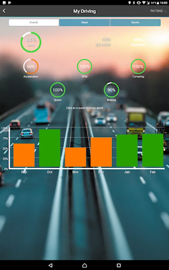 My Driving: See how individual driving habits contribute to you overall driving score, including a live dashboard giving feedback of your driving behaviour. Ensure your device is securely mounted before use