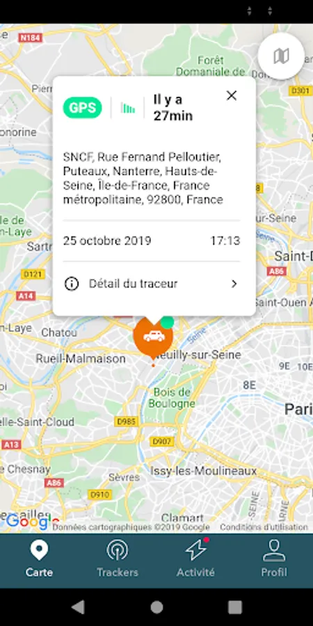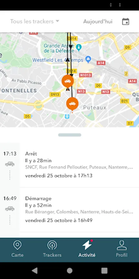 - Follow the activity of your trackers: all the history is recorded in detail and can be consulted at any time. You can choose which tracker and for how long you want to view the history. You also have access to the alerts that the tracker may have generated and the location of this alarm. This is ideal for locating your vehicle and the route taken.