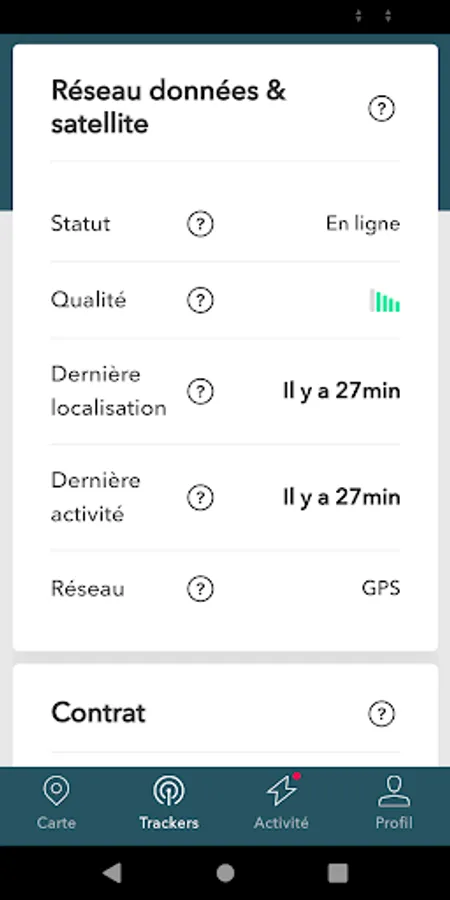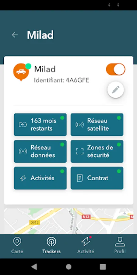 - At any time, you can view the state of health of your tracker (battery level, quality of the GPS signal, etc.), the correct setting of the security zones you have set up (home, work, vacation spot etc.) to ensure that if your vehicle equipped with the TRAKmy tracker leaves and / or enters a security zone, you immediately receive an alarm.