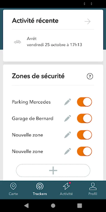 - Manage your alarms: when leaving or entering a security zone, you can configure the management of your alarms to: follow your tracker in real time or deactivate the alarm for an hour or half a day ( for an afternoon of total disconnection for example).