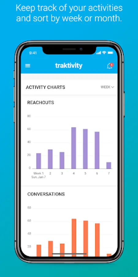 Keep on top of your schedule and upcoming activities with Traktivity’s embedded calendar. You’ll see your scheduled reach outs and conversations automatically populate into the calendar, so you don’t have to remember what’s coming up this week or this month.