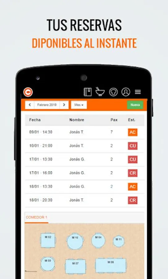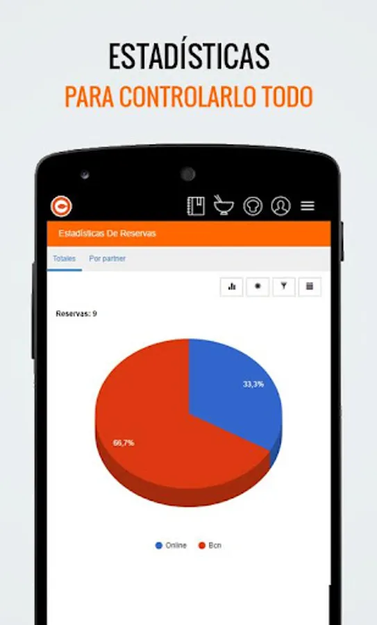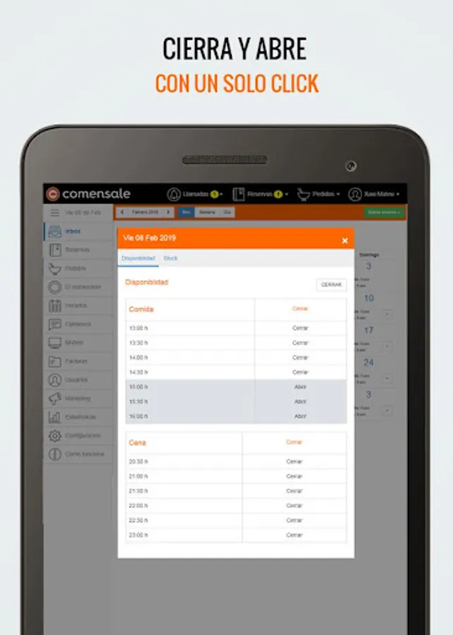 1. Comensale incorporates a powerful book of reservations. Set up your tables, your rooms and their distributions and let the program take care of everything. You can manage your reservations and closings manually or you can let the system assign tables and closes automatically. In addition, you have an online booking module, to incorporate into your website, Facebook or wherever you want.