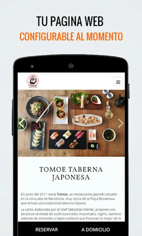 3. With Comensale you can create and manage your own web page. Configure your website to your needs, with your corporate colors, your images and with the typography you want. Choose the sections you prefer (Start, Photos, Menus, Letter, Opinions, Location, contact ..) and configure them easily and completely online. Let your website be responsible for receiving your reservations and orders automatically. Finally, your website will be updated and synchronized with your restaurant.