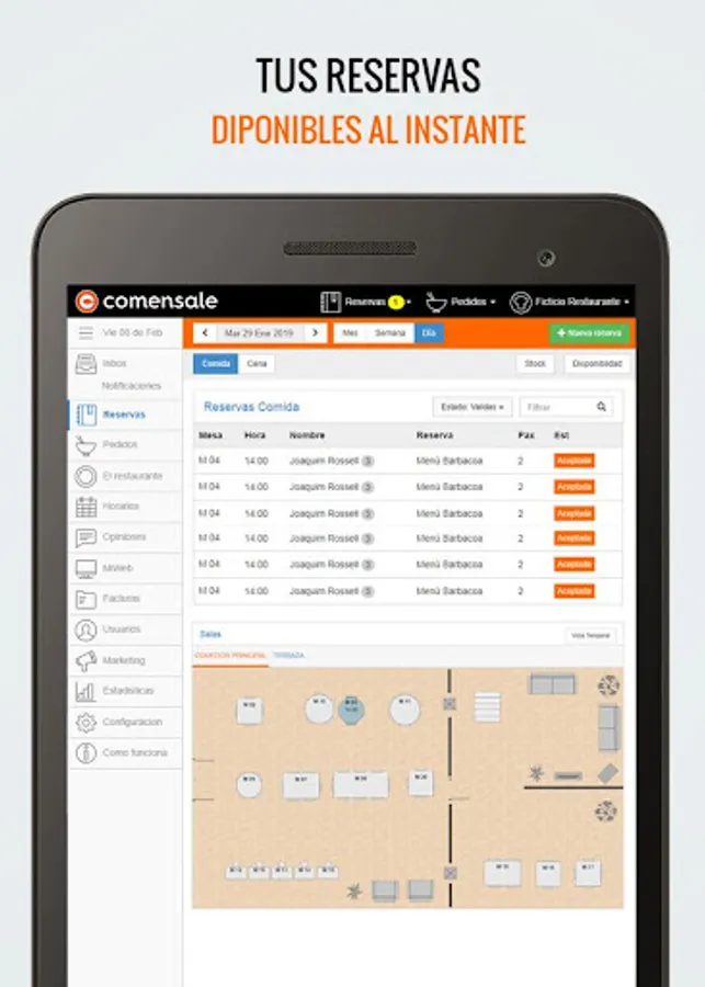 Comensale is the definitive software to manage your restaurant. It allows you to manage your restaurant in a unified way, grouping all your services in a single software (rooms, website, reservations, orders ...)