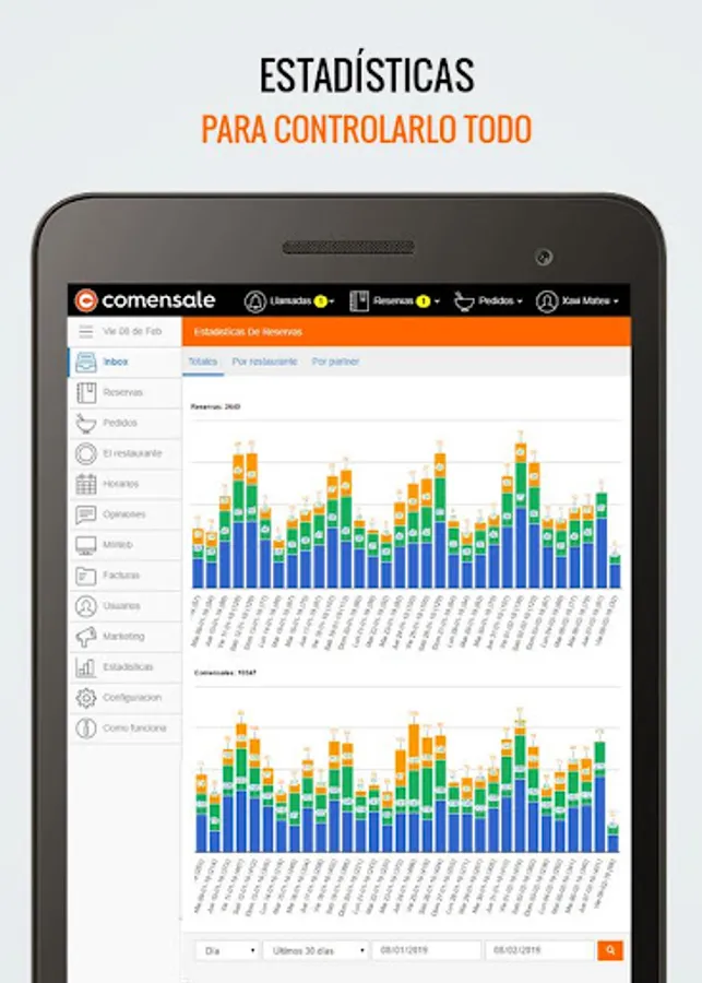 4. From Comensale you can manage your clients. You can see your reservations, your orders as well as your companies and your invoices. It also has an affiliation program (for agencies, hotels, ...) to receive reservations and orders easily.