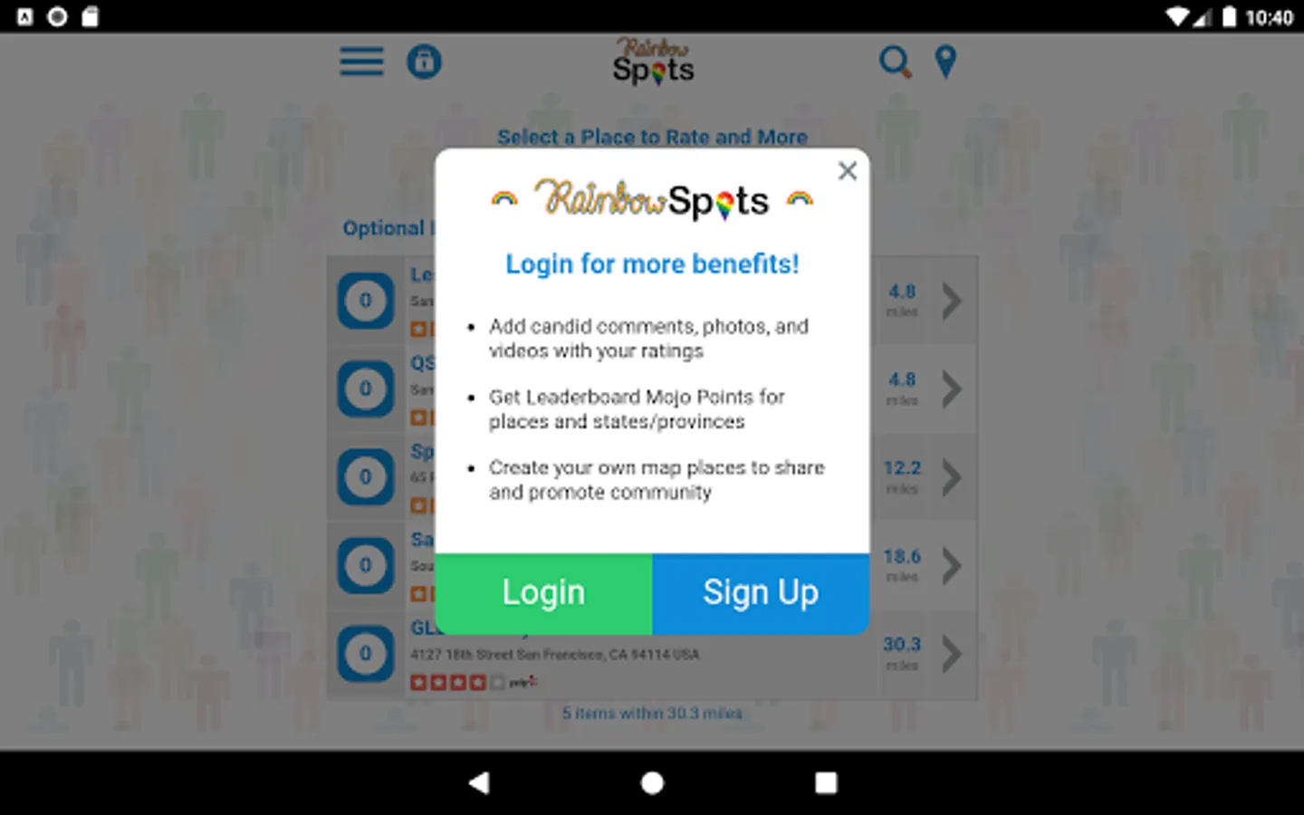 Find and Rate a growing number of LGBTQ+ friendly venues near you. Show your PRIDE and support the Rainbow! Use RainbowSpots!