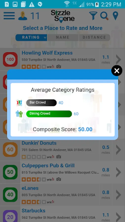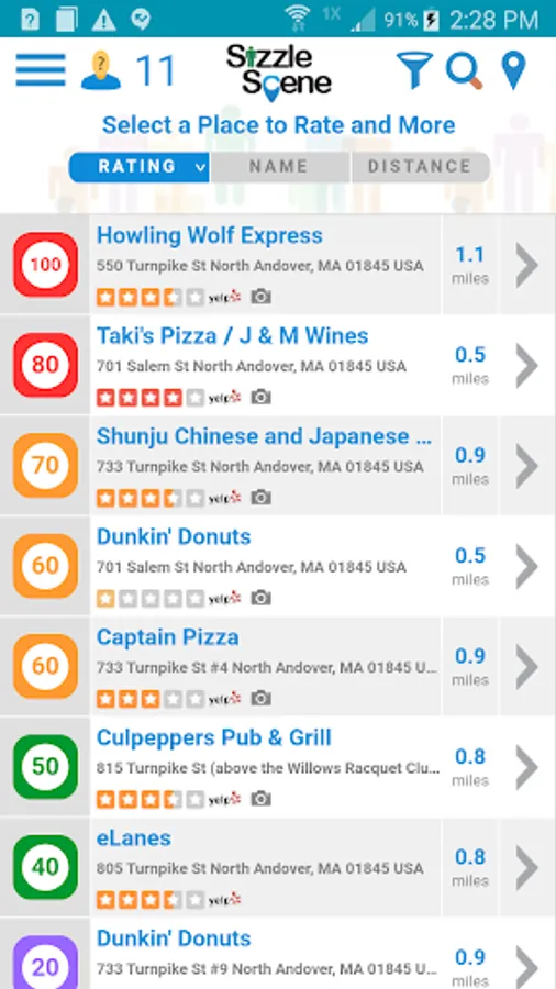 - Sort places by Name, Score, or Distance to quickly see what you want