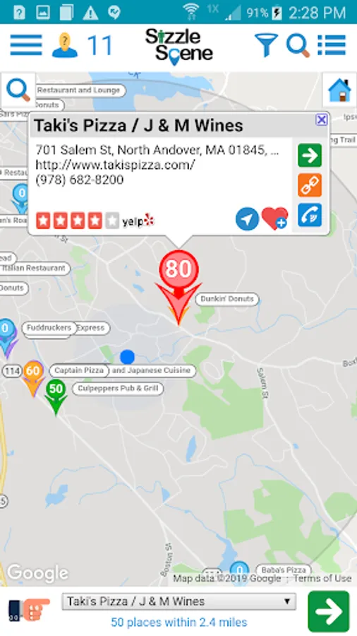 - Get more details on places, such as phone, web, pictures, Yelp! score