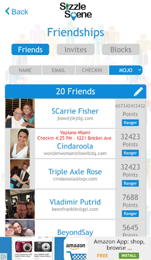 - Get major Mojo Points for referring others to sign up with Sizzle Scene
