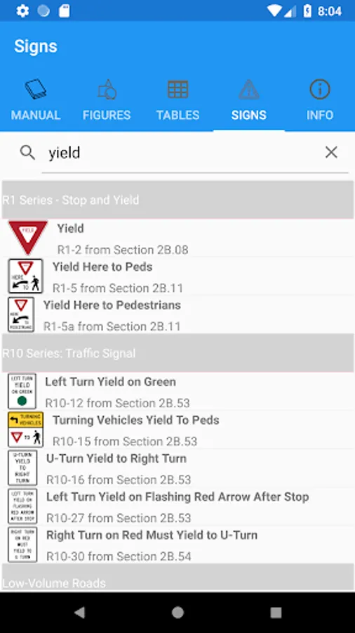 3. Includes more than 1000 high definition sign pictures which are in the manual, can be easily searched by name or designation such as R1-1
