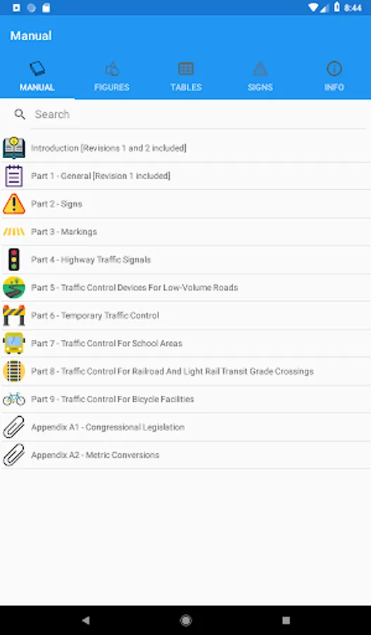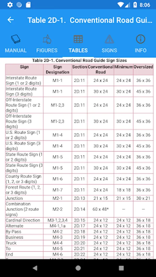 Our MUTCD mobile app incorporates the latest MUTCD manual (2009 Federal MUTCD with Revisions 1 and 2, May 2012 with embedded Known Errors as 1/12/2017) and make it very easy to search and filter manual texts and signs, a great help to traffic engineers and technicians doing the field work.