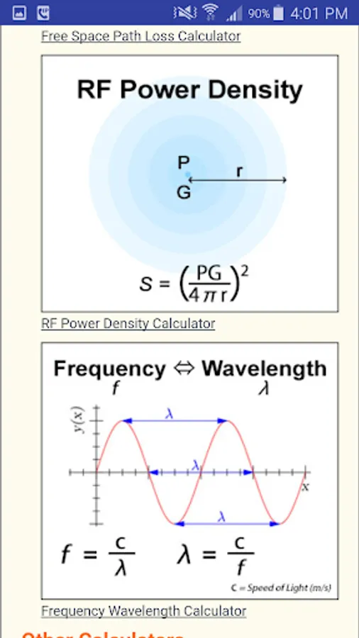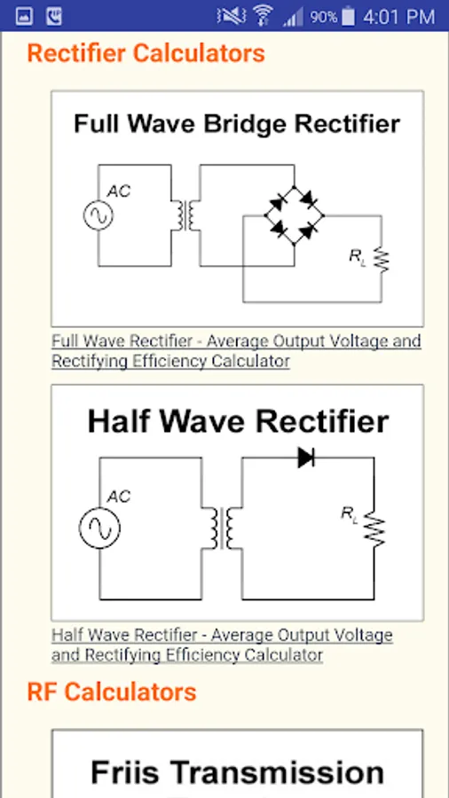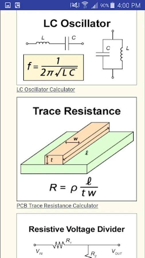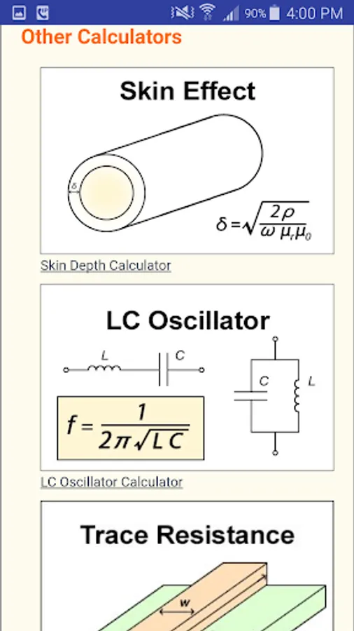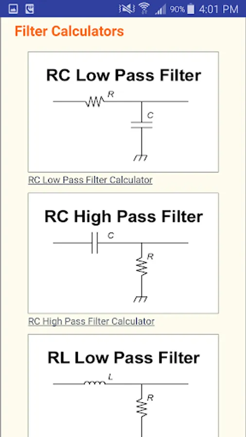 This handy app contains electrical filter, attenuator, rectifier, LC oscillator, and RF calculators.