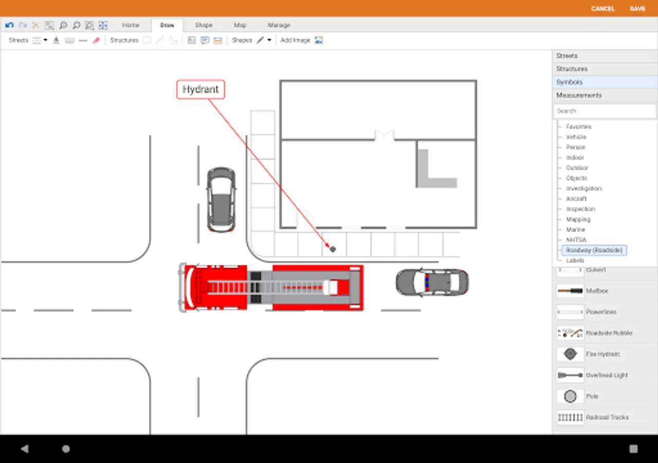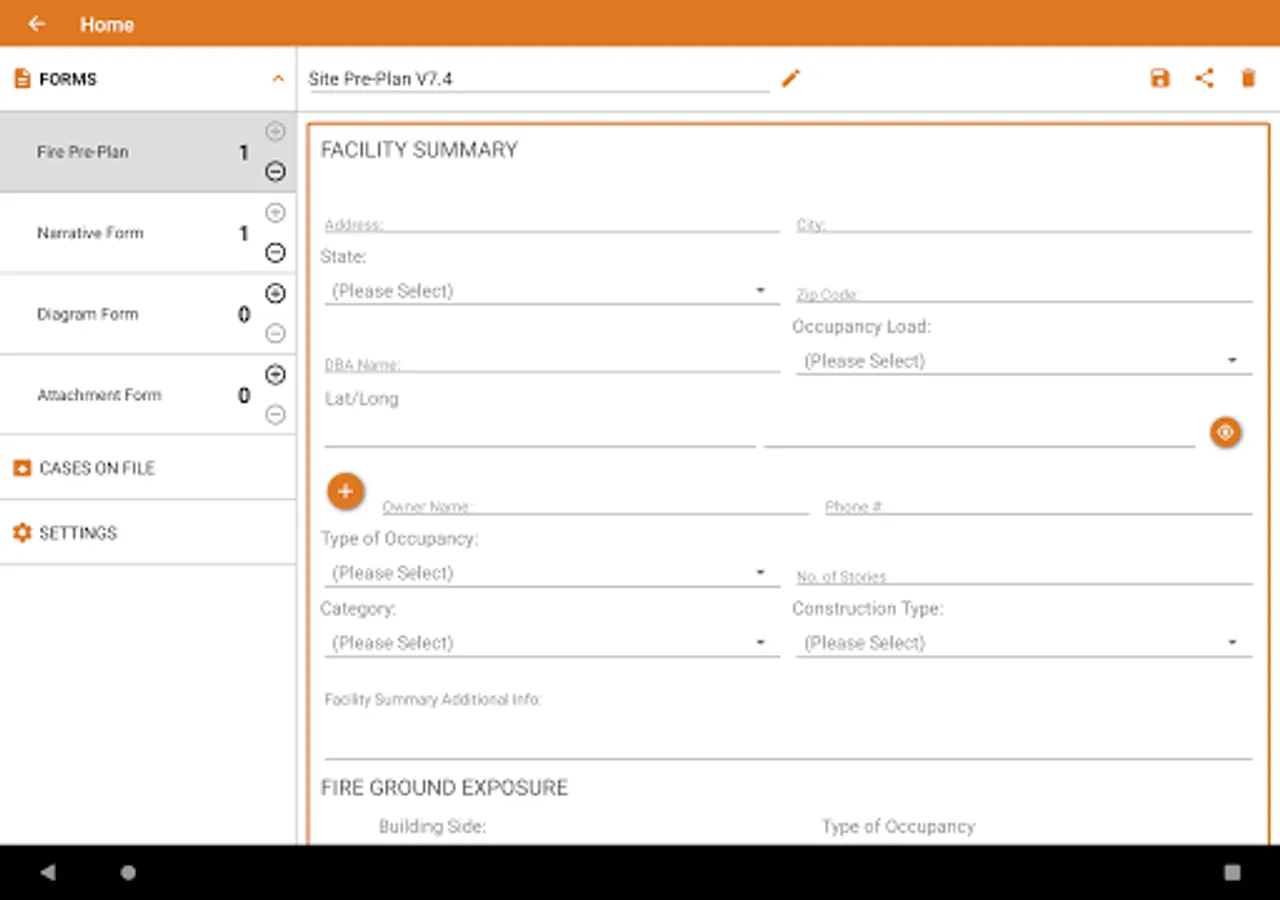 FireScene Mobile is designed to assist in investigating, documenting, and preparing for structure fires. It provides a simple electronic form for recording incident details, tools for drawing diagrams of the incident including NFPA standard fire-specific symbols and the ability to draw structures with moveable walls, doors, and windows. Relevant photos can also be captured. Additional forms are provided for pre-fire planning. Saved casebooks can be imported into FireScene for Windows for additional refinement, report generation, etc.