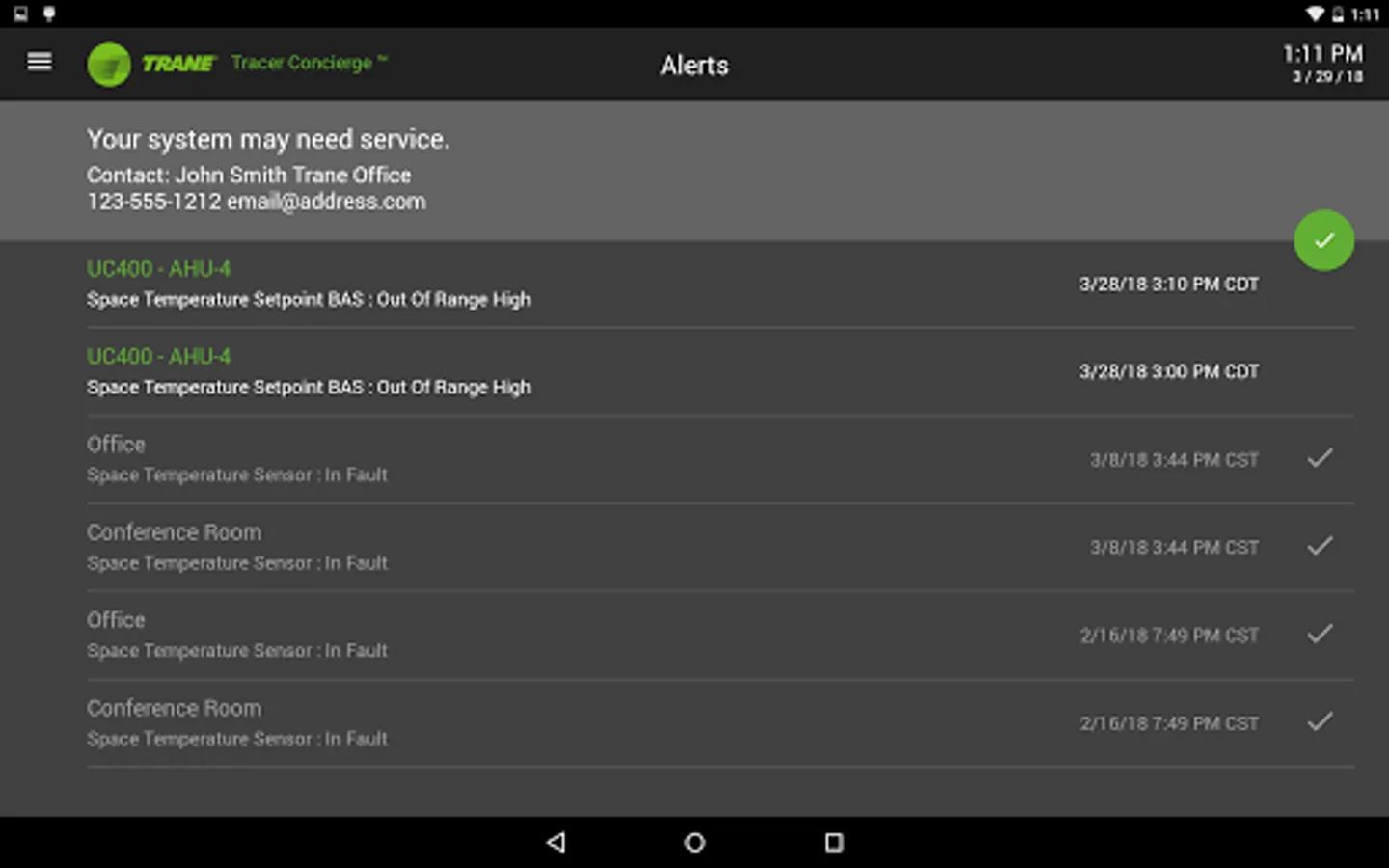 Monitor and respond to your building occupant’s needs by adjusting temperatures, adjusting schedules, and viewing critical alerts that require immediate service.