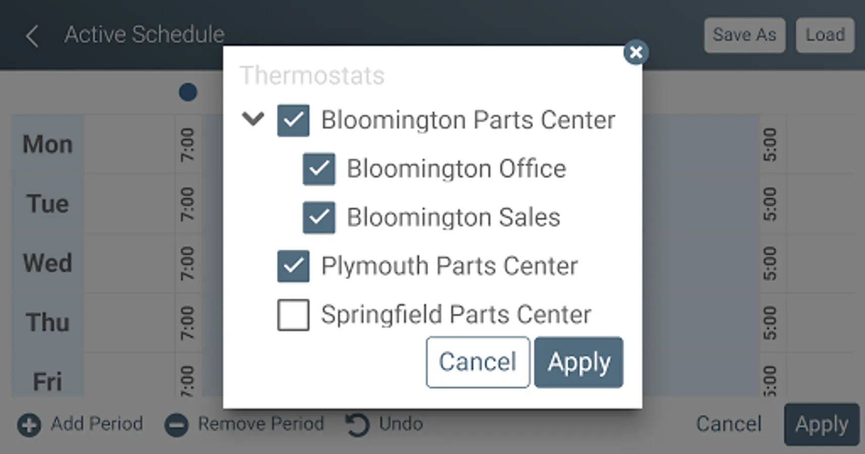 Schedule and Setpoint changes can be made to multiple systems at the same time.