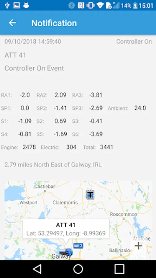 The Contact will receive a Push Notification on their device informing them of the Thermo King TracKing Notification when it occurs.