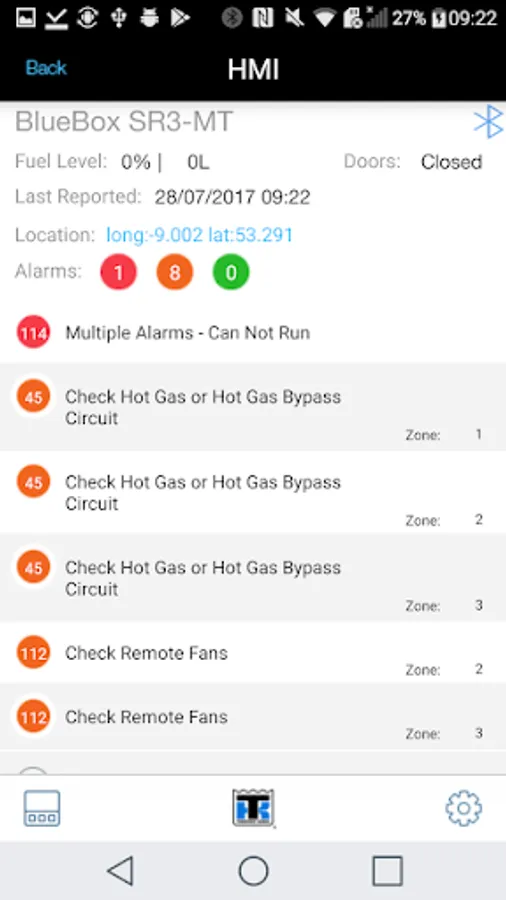 * View Reefer Controller Details; Set Point, Return Air, Alarms, Door Status & Fuel Level for Single and Multi Temp Reefers