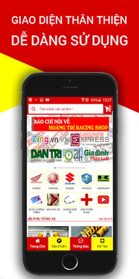 Hoang Tri Motorcycle Decoration App is designed with a friendly interface for all customers. Customers can "discover" motorcycle toys, motorcycle news, "super products" that the shop has made only on a single app.