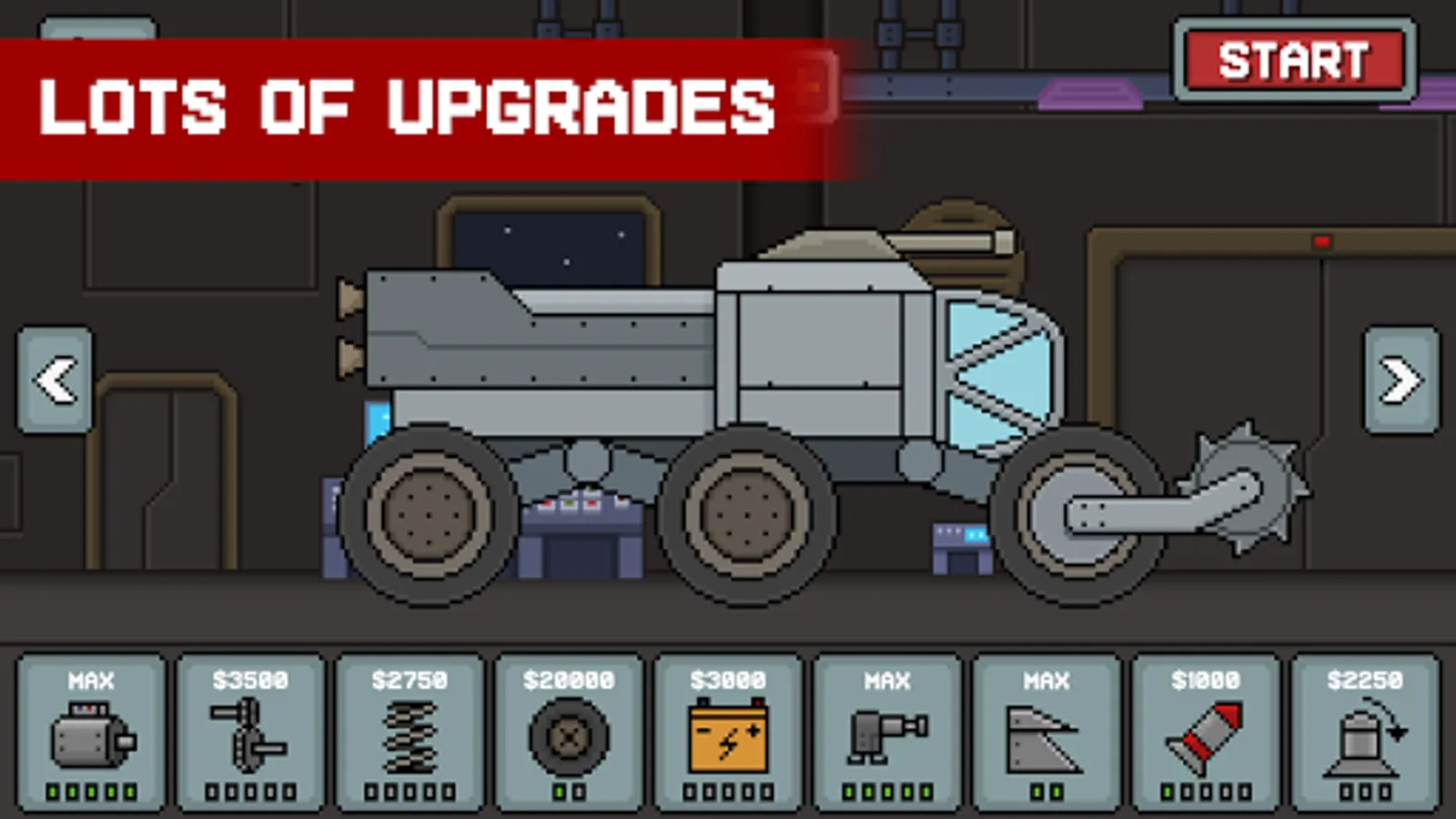 Explore all the planets of a distant galaxy. Drive your rover, conquer the lack of roads, climb all the hills and fight off the monsters and mutants who captured the peaceful colonists. Professor Lee will help you. He will bring up to date and help craft moon rover in the hangar. Earn some credits and build ultimate deadly machine.