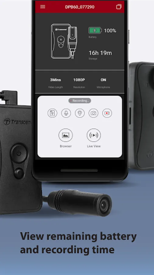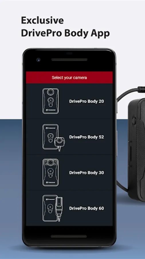 DrivePro Body App is for Transcend's Body Cameras. Users can instantly access recorded footage and snapshots directly via the DrivePro Body app.
