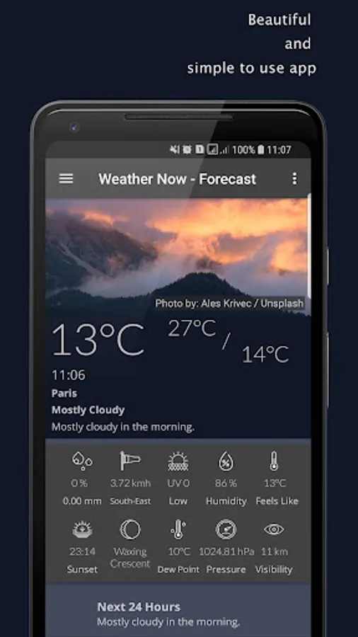 Weather Forecast Now is simple and beautiful weather forecast application. This app includes local weather alerts like rain, snow, fog etc and extreme weather alerts sent by government. The data source for this weather forecasting application is provided by Dark Sky providing hyperlocal weather forecasting details.