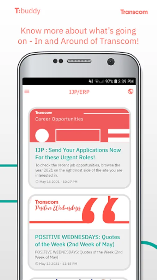 Buddy allows you to share your sentiments freely by selecting your mood for the day, so you’ll never go unnoticed. No more #FOMO. Get information you need about your PAR, PTO balances, upcoming events, discounts affiliations, shuttle schedules. Be notified when you need it by receiving real-time alerts.