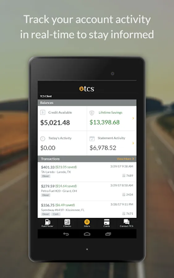 Trucking companies that do business with TransConnect Services (TCS) are always on the move, and we understand the need to manage your business from anywhere. With the new TCS Mobile App, you will have many benefits available at all times on your mobile device.