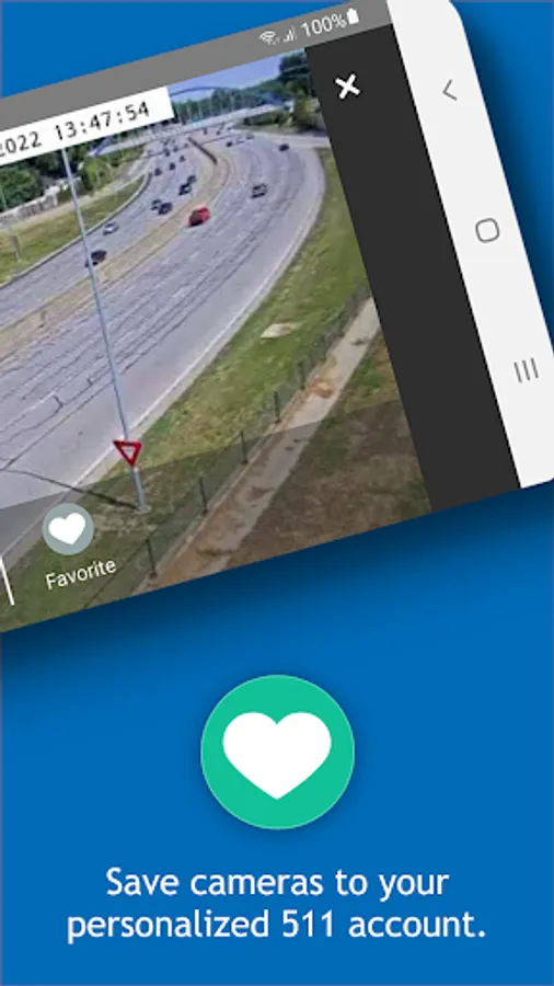 • Create and manage Your 511 personalized account including saved routes, areas, favorite camera views, and alerts via email and/or text.