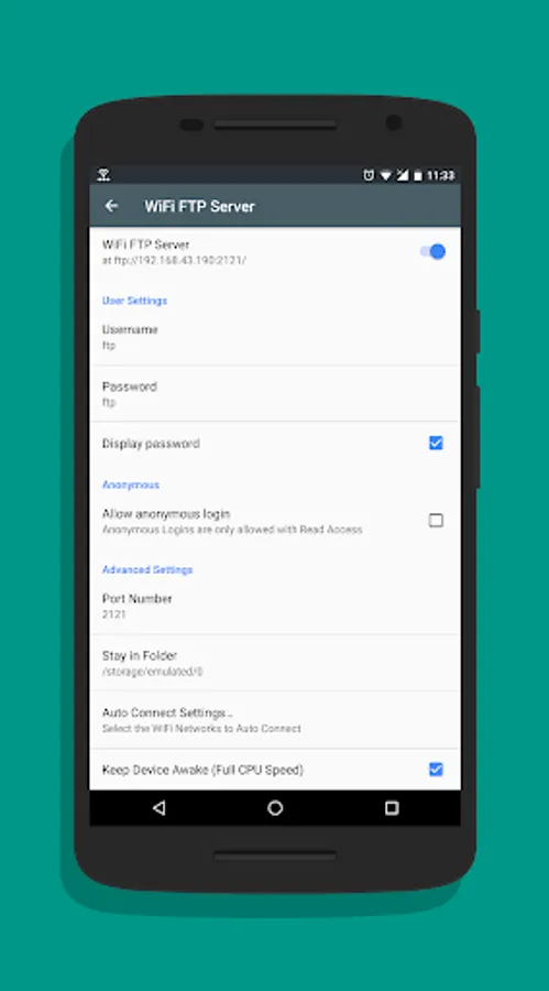 1. Start WiFi FTP on your Phone.