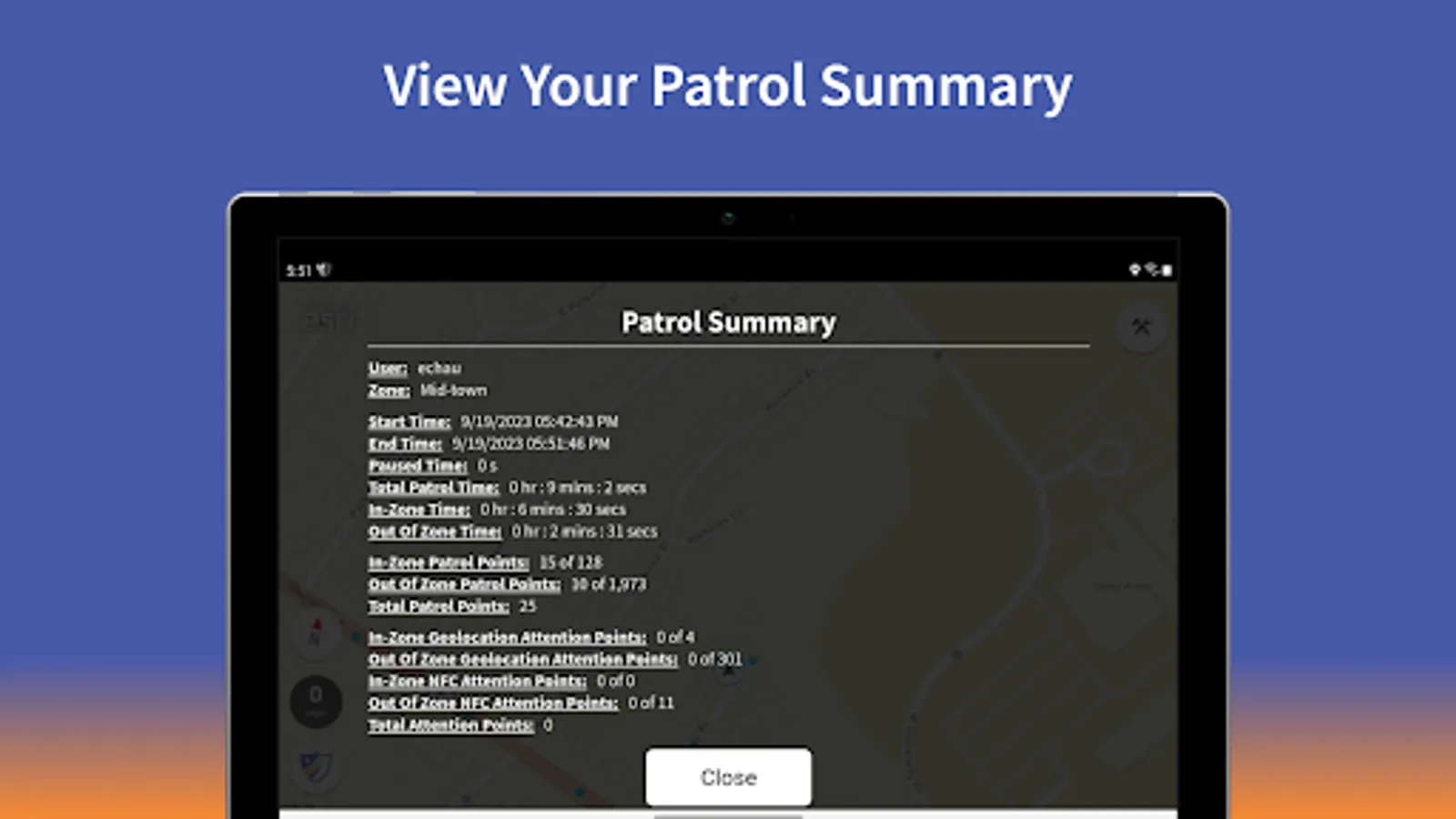 Record Patrol Sessions while driving, walking, biking and more while capturing location data. Start, Pause, and End Patrol Sessions with voice commands.