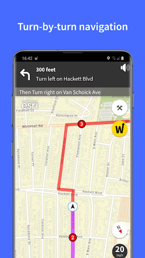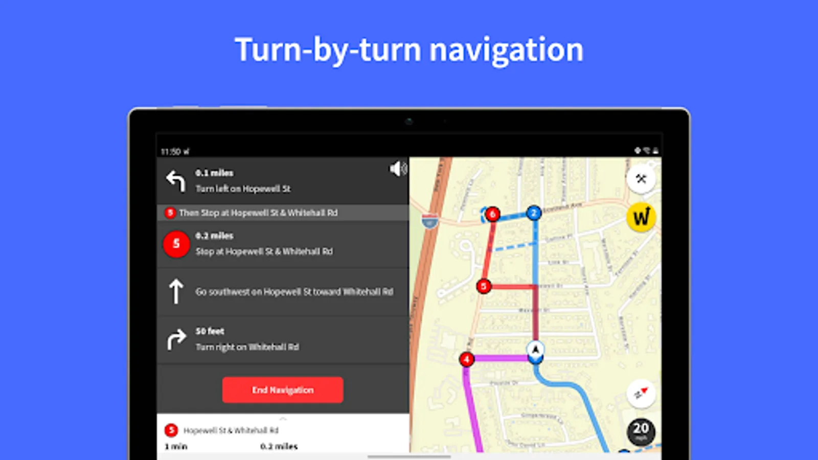 Wayfinder turn-by-turn voice navigation uses your maps and routes. Drivers can simulate and preview trips, and add, skip, and adjust stop details prior to starting navigation. Wayfinder is state compliant and can display directions on the map or go dark while driving.