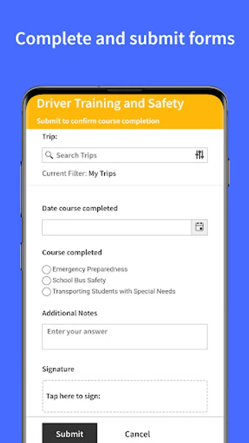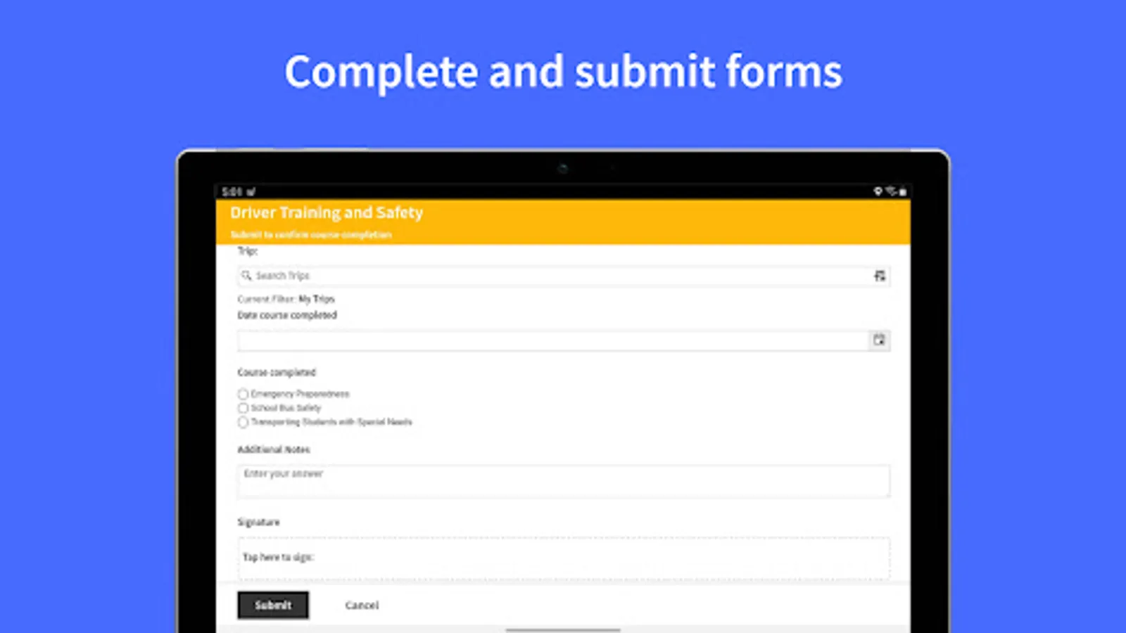 Complete and submit custom forms from Routefinder Plus through Wayfinder.