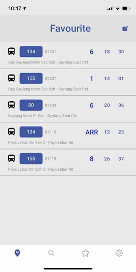 Favourite your most used buses at specific bus stops to immediately see the most important bus arrival times. Just tap on the star icon and get the latest update. You can easily add more favourite stops or remove those no longer needed.