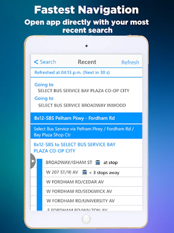 After you have searched a certain MTA bus route or stop, the next time you open the app, it will just navigate to where you were previously. With this function, it is extremely time saving and you will never have to search the bus over and over again.