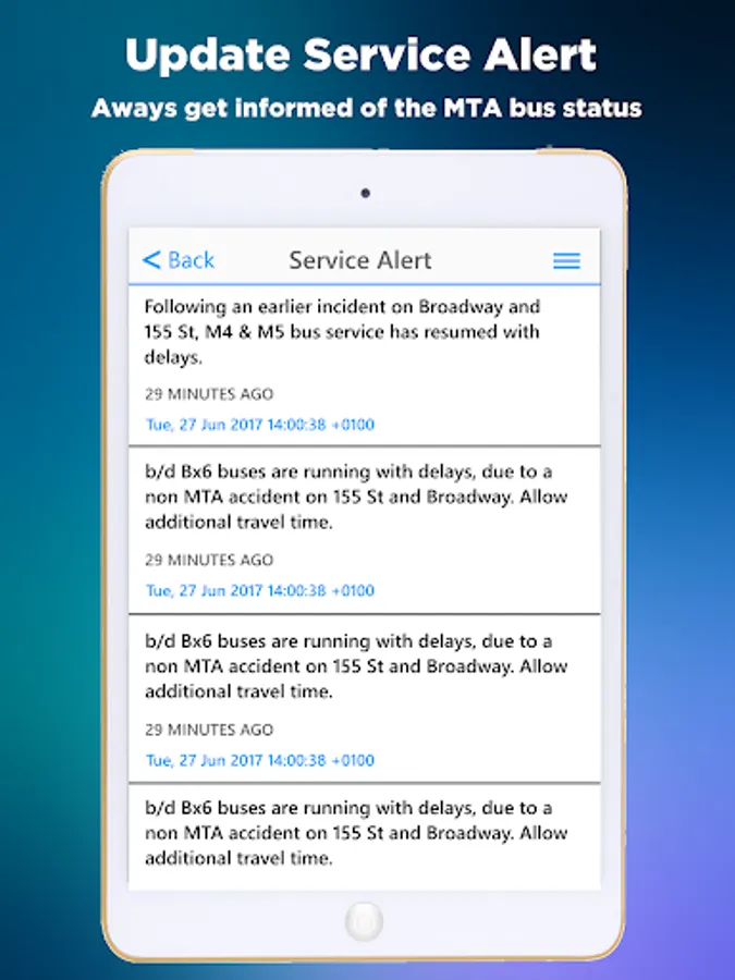 Always inform you with the most up to date MTA Bus Service Status and Alert!