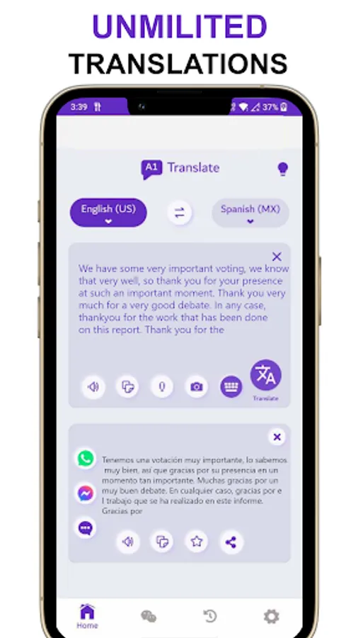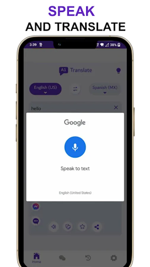 Use voice translation to translate the speech with high accuracy of voice. The translator application translates the worlds of any audio or song very fast. The translate voice and audio feature is ideal for travellers. or someone who needs to communicate correctly in other language.