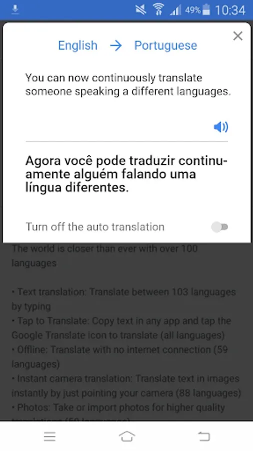 Language Translator: Speak and Translate All is a leading/professional translation app to translate between languages using features like text translator, voice translator, and text to speech. The voice translator app is especially useful when you are out of the country or in a place where you don't know the local language or somewhere foreign. Image Translator app allows you to speak and translate between multiple languages. Translate Now, a dictionary and translator offers a fun and efficient way to memorize vocabulary.