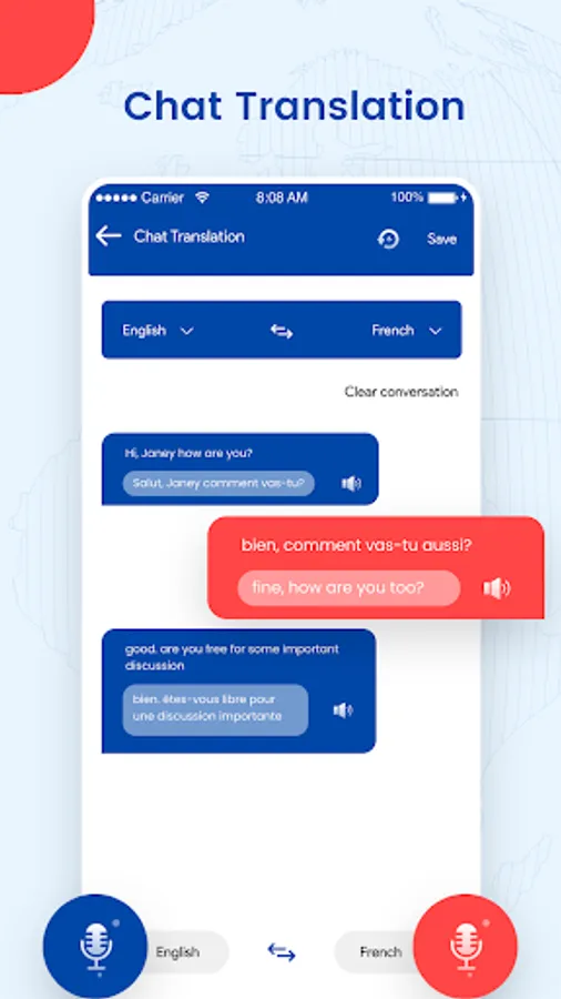 When you're chatting with your friends using a variety of social apps, Tranit enables you to quickly translate the text of the speech bubbles and input boxes, making your communication with foreign language friends smooth. New Translate all text voice conversation translator app