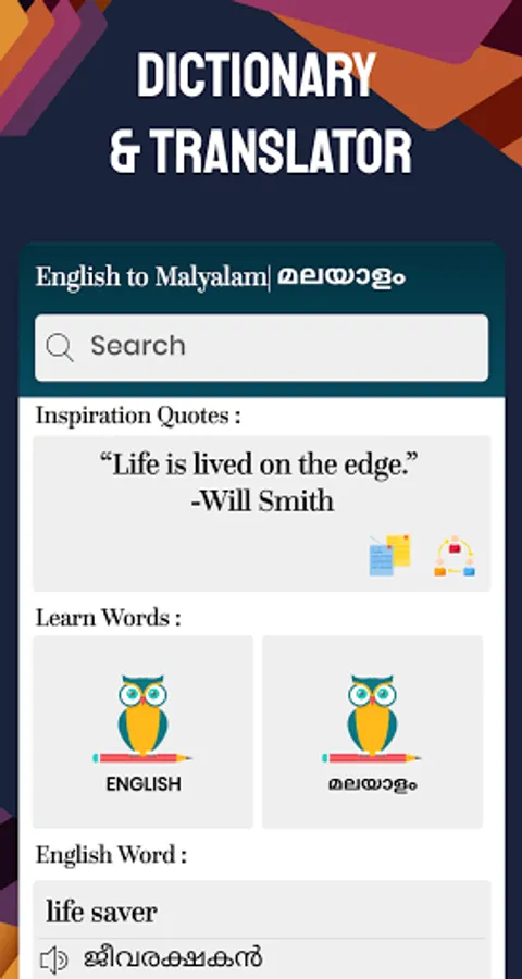 We hope you Like and Share English to Malayalam dictionary and translator.Review for more improvements ! your feedback is valuable to us ! Thanks.