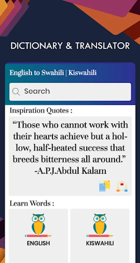 We hope you Like and Share English to Swahili dictionary and translator . Review for more improvements ! your feedback is valuable to us ! Thanks.