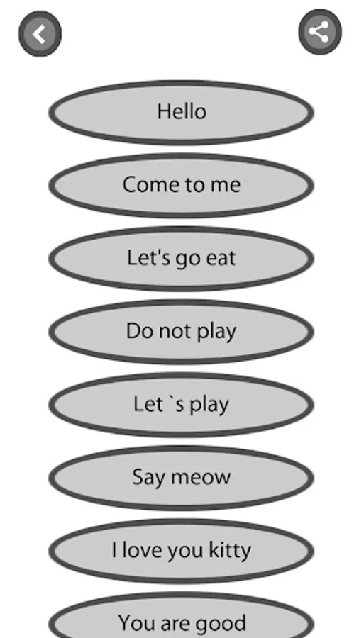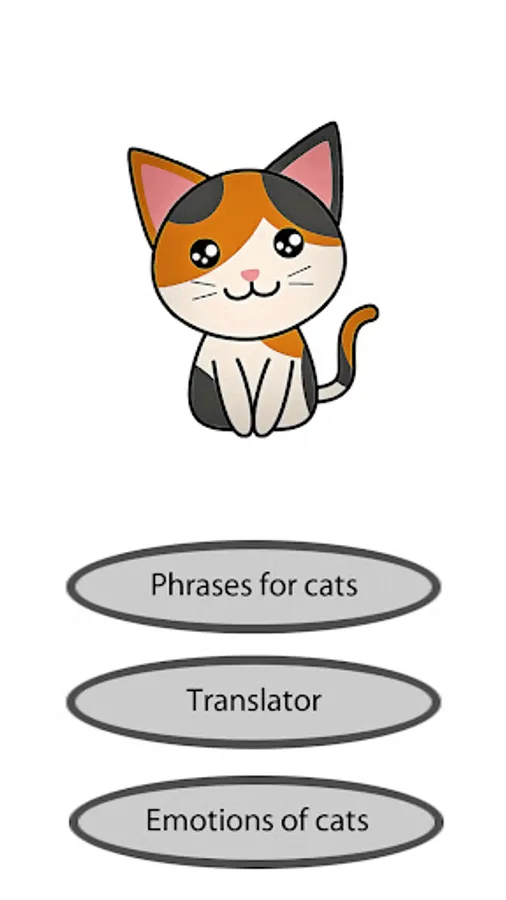 This translator from cat language to human will amuse your children, friends and relatives. Treat this with humor, because this is not real, but just a phrasebook simulator.