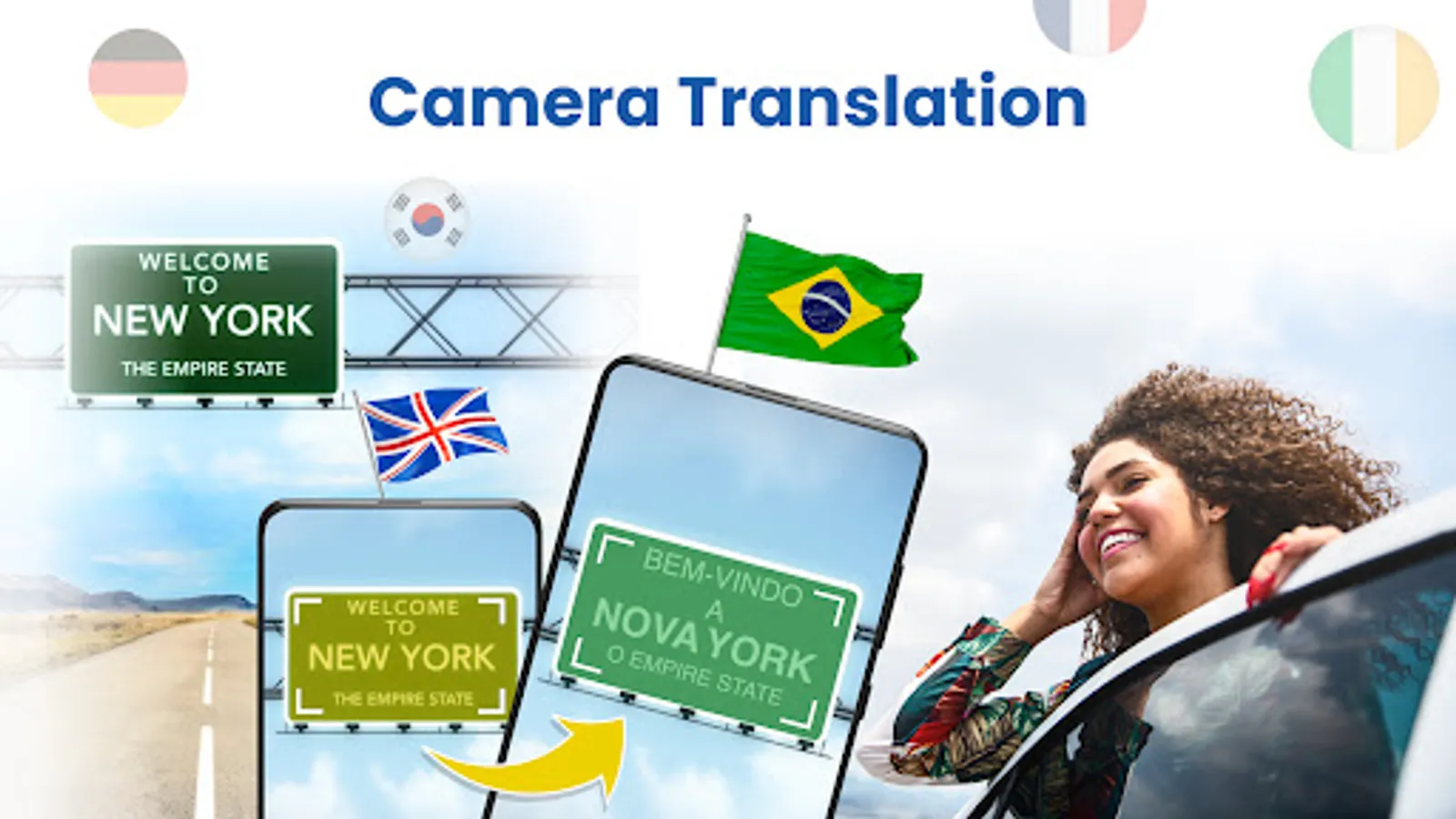 Simply use your device's camera and point at any printed text, billboard, or menus, and the camera translator will instantly do camera-to-text translations from English to Irish, Turkish to English, English to swahili, and many more.