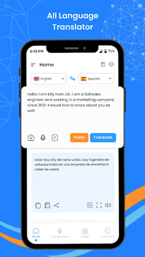 Language translation offers voice recognition and text translations in all languages. Translate foreign languages by using translate from English app. Convert text in all languages using best translation techniques with Ai. Doc Translator can translate document and convert files in all languages. All Language Translator is smart Ai tool that allows to learn languages. Download Translator acts as interpreter for each word translation. Auto translation provides quick dictionary app for free translation.