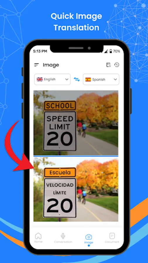 Language Translator can converts text, translate picture, voice, and words. Speech to Text conversion depends upon online dictionary that helps to translate words in all languages. Free translator app provide quick way to learn languages using Ai tool. Translator app is expert in auto translation by using dictionary app. Document Translator is all in one photo to text and speak translator free for Android.