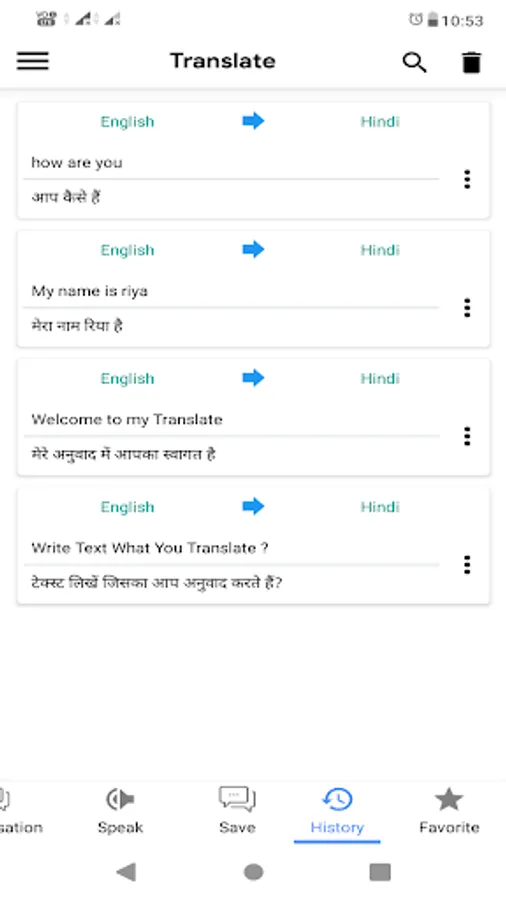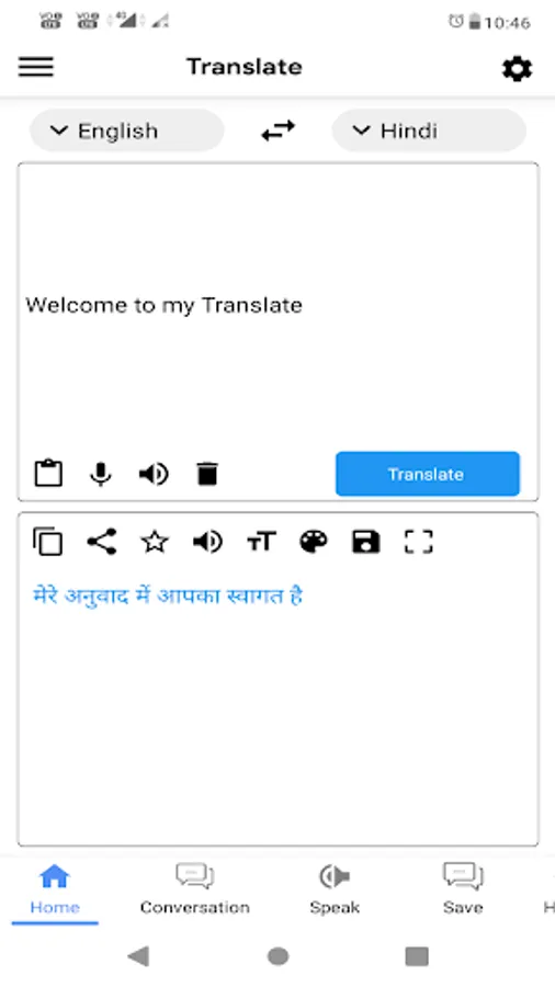 My Translate - Text & Speak - Translate language speak and voice. Free translator can quickly translate from English To हिन्दी and other language. Write text what you translate and write text what you speak.
