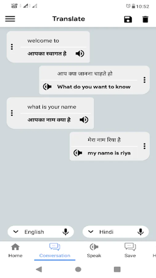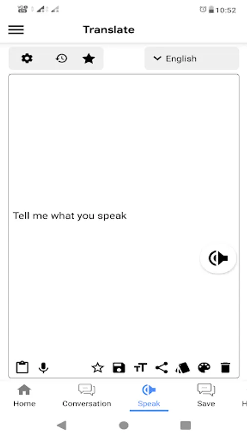 Conversation - speak text to Conversation. Zoom text size 14 - 50 and customise text size. Share text all share platforms like WhatsApp, Messenger, and many other. write text and speak text what you translate.