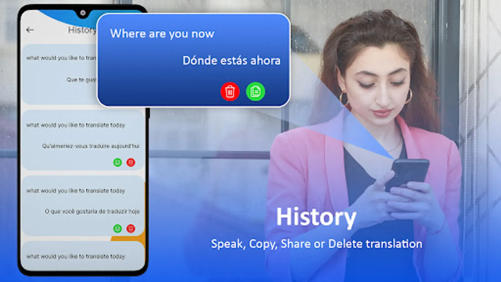 With Voice & Text Translator: Speech to Text Recognizer, you can easily translate your text into Hindi, Arabic, French, Turkish, Russian, Tamil, Thai, Chinese, Persian, Spanish, Swedish, Urdu, and many more. Get fast translation of any sentence or word in any language within a second. Convert your native language into the language you want. Download the language for easy communication in the voice translator app free. Translate Urdu to English or English to Urdu, Translate English to Hindi or translate Hindi to English for easy communication with a translator for all natives. Copy your text and paste it anywhere you want or share it on any social channel.